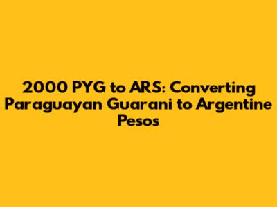 As of today, let's assume the exchange rate is approximately 1 ARS = 25 PYG. This means that one Argentine Peso is worth 25 Paraguayan Guarani. To convert 2000 PYG to ARS, you would divide 2000 by the exchange rate: