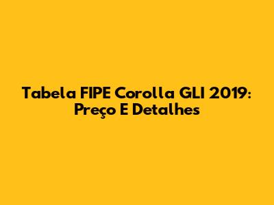 Tabela FIPE Corolla GLI 2019: Preço E Detalhes