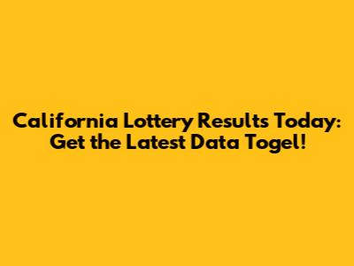 Hey guys! Are you looking for the latest California lottery results? Well, you've come to the right place! In this article, we're diving deep into everything you need to know about data togel California hari ini. We'll cover where to find the most up-to-date information, how to interpret the results, and even some tips and tricks to boost your chances of winning. So, buckle up and let's get started!