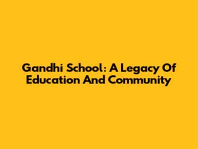 Gandhi School: A Legacy Of Education And Community