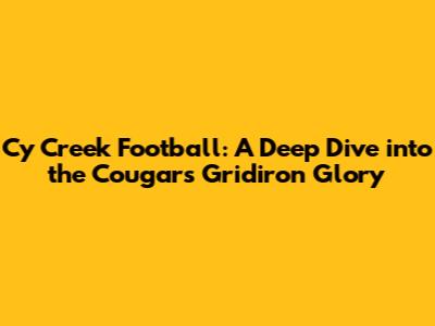 Hey sports fans! Ever wondered what makes Cy Creek Football so electrifying? Well, buckle up, because we're about to dive deep into the heart of the Cougars' gridiron glory. We'll explore the history, the players, the coaches, and all the exciting moments that have made Cy Creek a powerhouse in the world of high school football. From nail-biting games to triumphant victories, we'll cover it all. So, grab your jerseys, fire up the grill, and get ready for a thrilling journey through the world of Cy Creek Football!