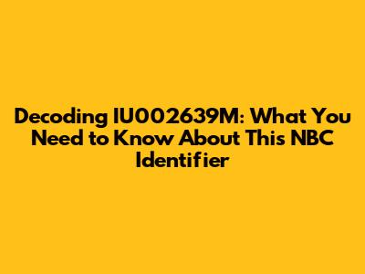 Have you ever stumbled upon the code IU002639M and wondered what it means, especially in the context of NBC? Well, you're not alone! This alphanumeric string might seem cryptic at first glance, but it actually serves a specific purpose within the NBCUniversal ecosystem. Let's dive into the world of identifiers and break down what IU002639M signifies, its potential uses, and why it matters. Think of it as a secret decoder ring for the media world, except we're giving you the key! Understanding these identifiers can help you navigate the complex landscape of media content and distribution. So, whether you're a media professional, a curious viewer, or just someone who likes to understand the behind-the-scenes workings of television, this guide will shed light on the mystery of IU002639M. We'll explore its potential connection to specific programs, advertising campaigns, or internal tracking systems within NBCUniversal. By the end of this article, you'll be able to recognize this identifier and have a general understanding of its role in the broadcasting giant's operations. It's like getting a peek behind the curtain of one of the biggest names in entertainment! So buckle up, grab your thinking cap, and let's decode the enigma that is IU002639M. It's time to unravel the mystery and gain a deeper appreciation for the intricate systems that bring your favorite shows to your screen. This journey into the world of media identifiers will not only demystify this specific code but also provide you with a broader understanding of how content is managed and tracked in the digital age. Get ready to impress your friends with your newfound knowledge of media identifiers!