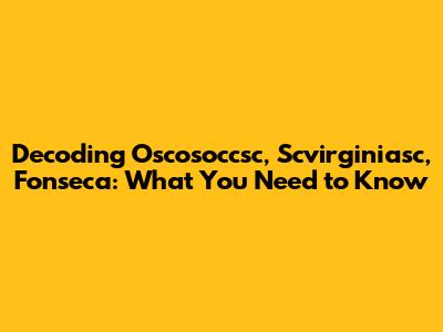 Hey guys! Ever stumbled upon some weird acronyms or names online and felt totally lost? Today, we're diving deep into some intriguing terms: Oscosoccsc, Scvirginiasc, and Fonseca. We’ll break down what these could mean, why they might be relevant to you, and give you all the juicy details you need to stay in the know. Let’s get started!