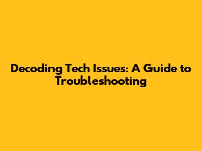 Decoding Tech Issues: A Guide To Troubleshooting