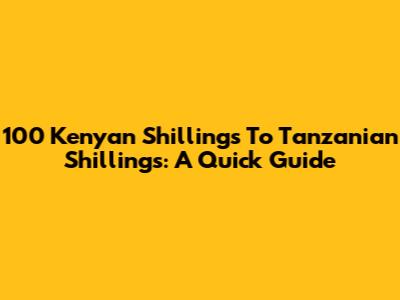 100 Kenyan Shillings To Tanzanian Shillings: A Quick Guide