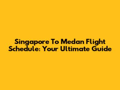 Singapore To Medan Flight Schedule: Your Ultimate Guide