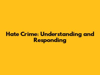 Hate Crime: Understanding And Responding