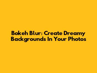 Bokeh Blur: Create Dreamy Backgrounds In Your Photos