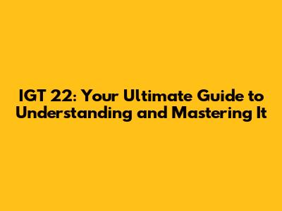 IGT 22: Your Ultimate Guide To Understanding And Mastering It