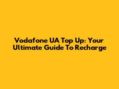 Vodafone UA Top Up: Your Ultimate Guide To Recharge