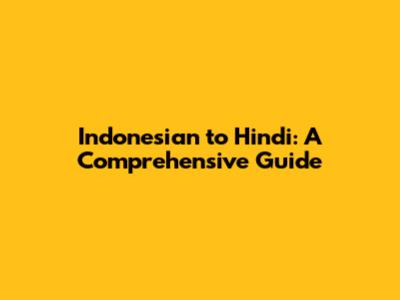 Indonesian To Hindi: A Comprehensive Guide