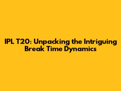 How Break Times Impact the Flow and Strategy of IPL T20 Matches