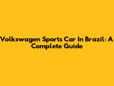 Volkswagen Sports Car In Brazil: A Complete Guide