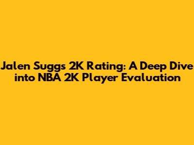 Hey guys! Let's talk about Jalen Suggs and his 2K rating. For those who aren't familiar, 2K ratings are basically how the NBA 2K video game series assesses a player's skills and abilities. It's a fun way to gauge how a player stacks up in the virtual world, and often, it reflects the buzz and expectations surrounding a real-life player. So, what's Suggs' deal in the 2K universe? Where did his rating start, how has it evolved, and what can we expect moving forward? Let's dive in and break it down.