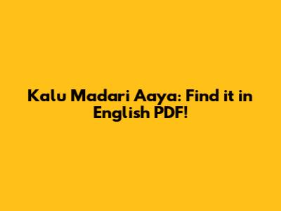 Are you looking for Kalu Madari Aaya in English PDF? You've come to the right place! Let's dive into how you can find this resource and what makes it so interesting. This article will guide you through the process and provide some background information to enhance your understanding.