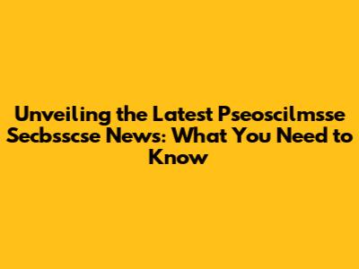 Hey everyone! Today, we're diving deep into the exciting world of pseoscilmsse secbsscse and bringing you all the freshest news and updates you've been craving. If you're like me and always on the lookout for the latest happenings in this fascinating niche, you've come to the right place, guys. We're going to break down all the essential information, making it super easy to understand and, hopefully, even more exciting. So, buckle up, because we've got a lot of ground to cover, and I promise to keep it engaging and valuable for all of you. We'll explore the recent developments, what they mean for the community, and what we can anticipate in the near future. This isn't just about reporting news; it's about understanding the impact and the potential of these advancements. Get ready to be informed and inspired!