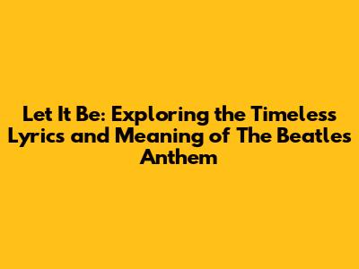 Hey music lovers! Ever found yourself humming along to a song that just gets you? For many of us, that song is "Let It Be" by The Beatles. It's more than just a tune; it's a feeling, a message, a mantra. Today, we're diving deep into the heart of this iconic track, exploring its lyrics, meaning, and the impact it's had on generations. So, grab your headphones, get comfy, and let's unravel the magic of "Let It Be" together!
