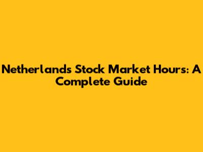 Netherlands Stock Market Hours: A Complete Guide