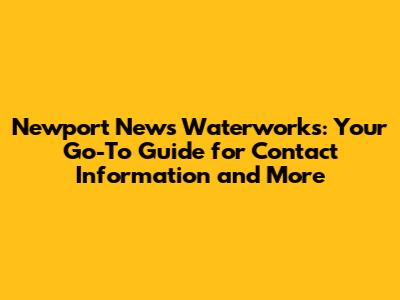 Contacting Newport News Waterworks: Phone Numbers and Essential Information
