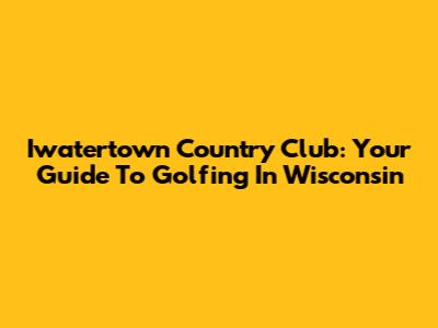 Iwatertown Country Club: Your Guide To Golfing In Wisconsin