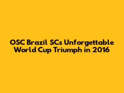 Hey sports fans, let's rewind the clock and dive into a story of grit, glory, and the sweet taste of victory! We're talking about OSC Brazil SC's phenomenal win at the 2016 World Cup. This wasn't just any win; it was a testament to their dedication, teamwork, and the relentless pursuit of a dream. So, buckle up, guys, as we explore the journey of OSC Brazil SC from underdogs to champions. Their performance at the 2016 World Cup was nothing short of legendary, filled with nail-biting moments, stunning goals, and an unwavering spirit that captivated the world. The team's journey to the top was paved with challenges, but their resilience and strategic brilliance shone through, ultimately leading them to claim the coveted title. Their victory was a symbol of hope and inspiration, proving that with hard work and determination, anything is possible. This article will break down the key moments, star players, and strategic masterstrokes that led to OSC Brazil SC's historic triumph. We'll explore the tactics they employed, the rivals they overcame, and the lasting legacy they created. It’s a story that’s sure to inspire and remind us of the power of teamwork and the pursuit of excellence. This victory wasn't just a win for the team; it was a win for Brazil and a moment of pride for the entire nation. Their journey embodies the spirit of sportsmanship and the relentless pursuit of a dream. The 2016 World Cup win remains a shining example of what can be achieved when talent, strategy, and heart combine. Their journey is a testament to the power of teamwork, dedication, and the unwavering belief in oneself.