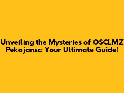 Unveiling the Mysteries of OSCLMZ Pekojansc: Your Ultimate Guide!