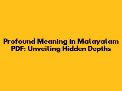 Have you ever stumbled upon a word, a phrase, or an entire text in Malayalam that just seemed to hold layers upon layers of significance? You're not alone! The beauty of language lies not just in its literal translation, but in the rich tapestry of cultural, historical, and emotional context it carries. In this article, we'll dive deep into exploring the concept of 'profound meaning' within the realm of Malayalam, particularly focusing on how you can access and understand these deeper layers through readily available PDF resources. So, grab your metaphorical diving gear, guys, because we're about to plunge into a world where words whisper secrets and stories unfold with every syllable!