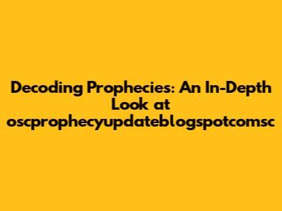 Hey guys! Today, we're diving deep into the world of prophecy and taking a closer look at oscprophecyupdateblogspotcomsc. Now, I know that sounds like a mouthful, but bear with me. We're going to break down what this is all about, why it matters, and what we can learn from it. So, buckle up and let's get started!