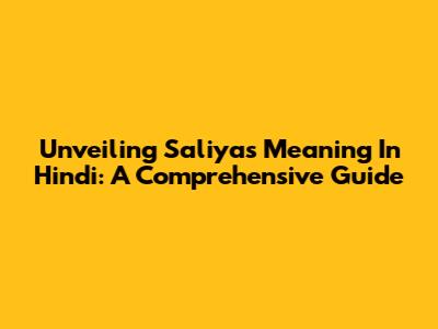 Unveiling Saliya's Meaning In Hindi: A Comprehensive Guide