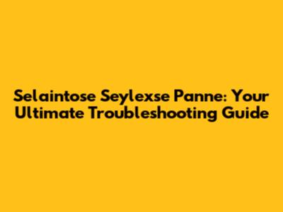 Selaintose Seylexse Panne: Your Ultimate Troubleshooting Guide