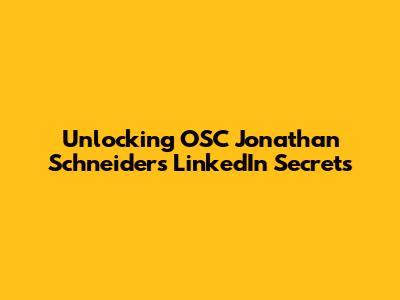 Unlocking OSC Jonathan Schneider's LinkedIn Secrets