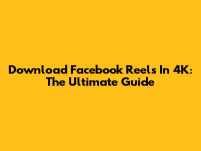Download Facebook Reels In 4K: The Ultimate Guide