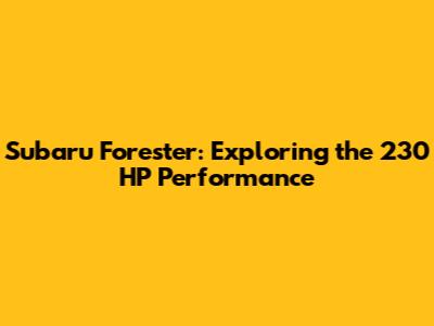 Understanding the Subaru Forester's 230 HP Engine Options