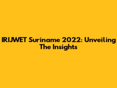 IRIJWET Suriname 2022: Unveiling The Insights