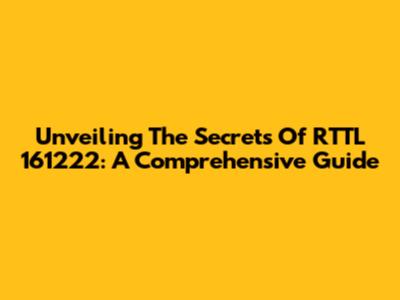 Unveiling The Secrets Of RTTL 161222: A Comprehensive Guide