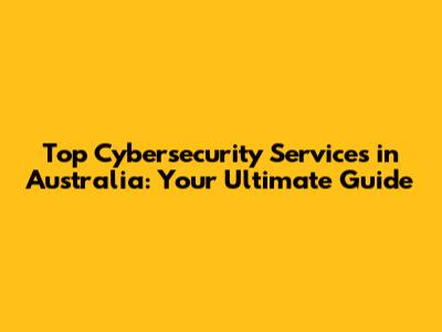 Top Cybersecurity Services In Australia: Your Ultimate Guide
