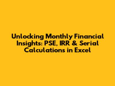 Hey finance enthusiasts! Ever wondered how to crunch those numbers and get a clear picture of your monthly financial performance? Well, buckle up, because we're diving deep into the world of PSE, IRR, and Serial calculations in Excel. These tools are like secret weapons in your financial arsenal, helping you analyze investments, track progress, and make smarter decisions. Let's break down each concept and see how you can use Excel to unlock these insights. We'll be using the power of Excel to make some powerful calculations, so get ready to unleash your inner financial guru!