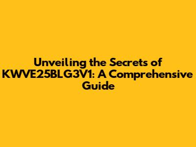 Why Does KWVE25BLG3V1 Matter? Its Significance