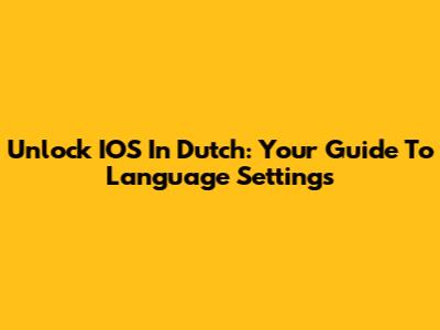 Unlock IOS In Dutch: Your Guide To Language Settings