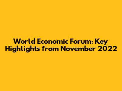World Economic Forum: Key Highlights From November 2022